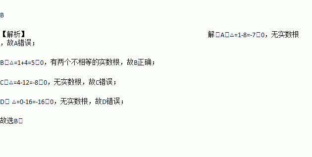 A. x2-x+2=0 B. x2+x-1=0 C. x2-2x+3=0 D. x2+4=0