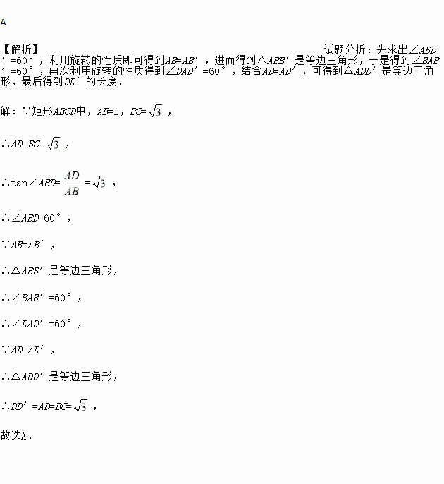 .将矩形ABCD绕点A逆时针旋转至矩形AB′C′D′,使得点B′恰好落在对角线BD上,连接DD′,则DD′的长度为( )