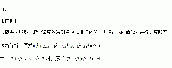 先化简,再求值(a+b)2+(a-b)(2a+b)-3a2,其中:a=,b=