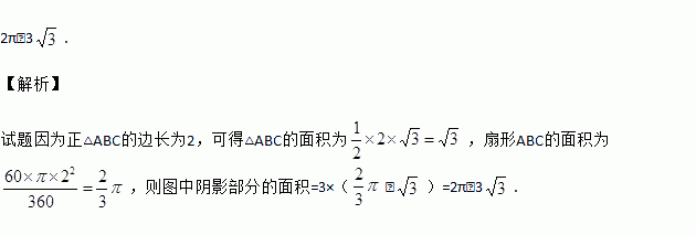 如图,△ABC是等边三角形,AB=2,分别以A,B,C为圆心,以2为半径作弧,则图中阴影部分的面积是 .