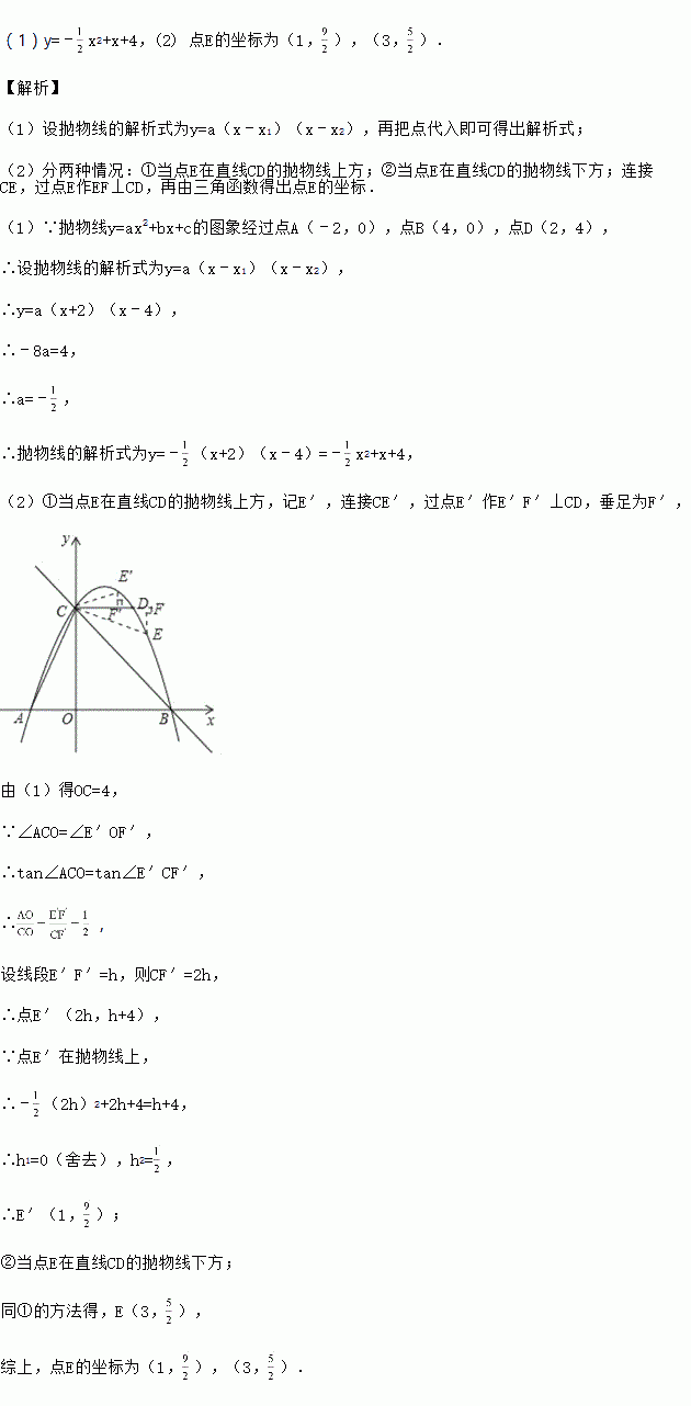 如图,抛物线y=ax2+bx+c的图象经过点A(﹣2,0),点B(4,0),点D(2,4),与y轴交于点C,作直线BC,连接AC、CD.