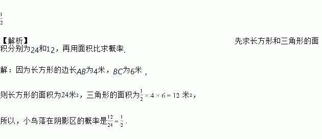 如图,长方形花园ABCD,AB为4米,BC为6米,小鸟任意落下,则小鸟落在阴影区的概率是多少?