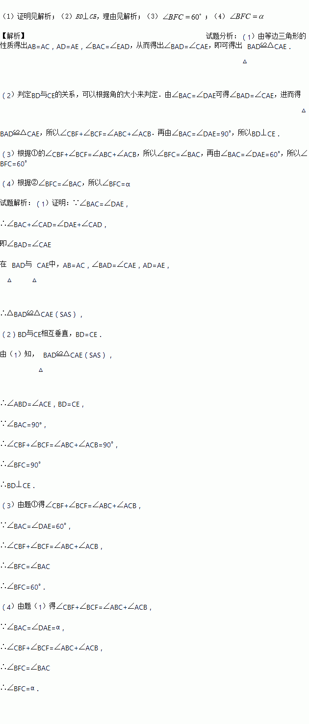 (3)如图②,若∠BAC=∠DAE=60°,求∠BFC的度数;