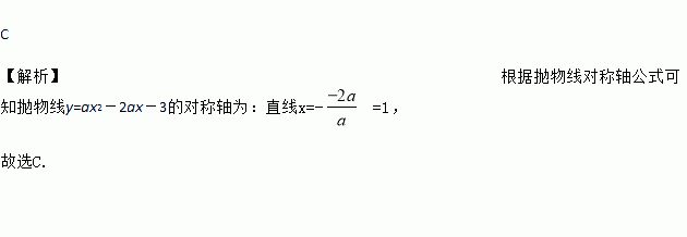 C 【解析】根据抛物线对称轴公式可知抛物线y=ax2-2ax-3的对称轴为:直线x=- =1, 故选C.