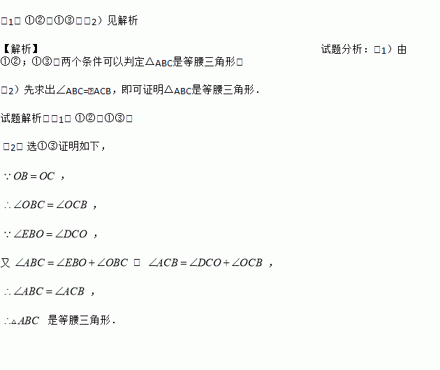 (1)上述三个条件中,由哪两个条件可以判定△