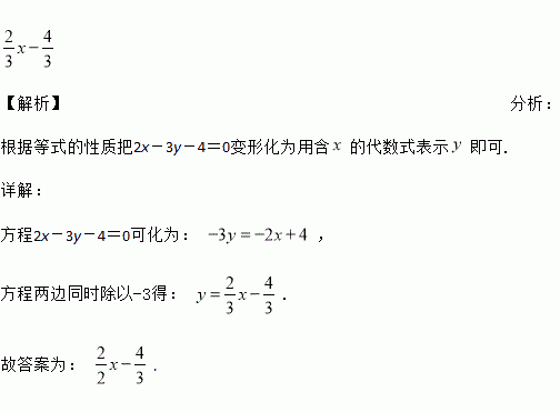由2x-3y-4=0,可以得到用x表示y的式子y=_________________