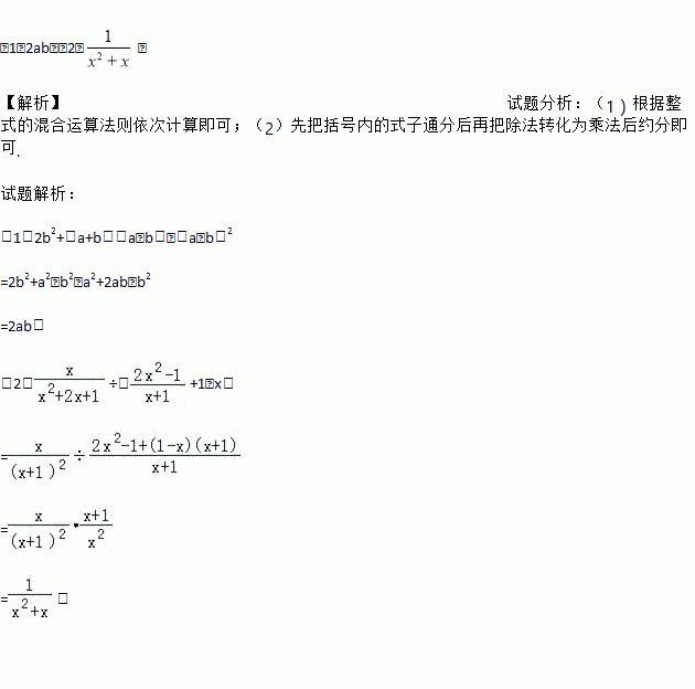 (1)2b2+(a+b)(a﹣b)﹣(a﹣b)2
