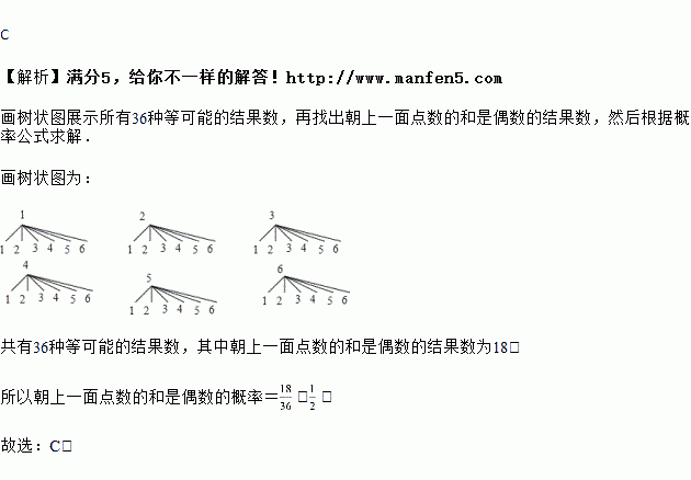 同时投掷颗均匀的股子,朝上一面点数的和是偶数的概率是( )