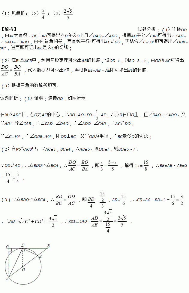 已知:如图,在△ABC 中,∠C=90°,∠BAC 的平分线 AD 交 BC于点 D,过点 D 作 DE⊥AD 交 AB 于点 E,以 AE 为直径作⊙O.