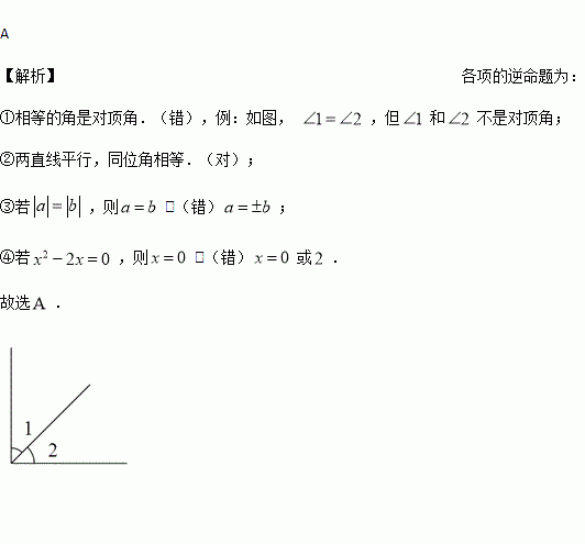 下列命题:①对顶角相等;②同位角相等,两直线平行;③若,则;④若,则其中逆命题一定成立的有( ).