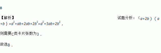 如图,正方形卡片A类,B类和长方形卡片C类若干张,如果要拼一个长为(a+2b),宽为(a+b)的大长方形,则需要C类卡片( )