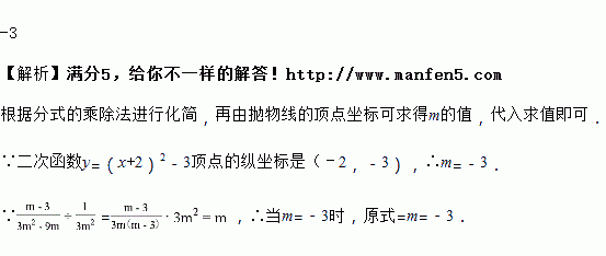 先化简,再求值:,其中m是二次函数顶点的纵坐标.