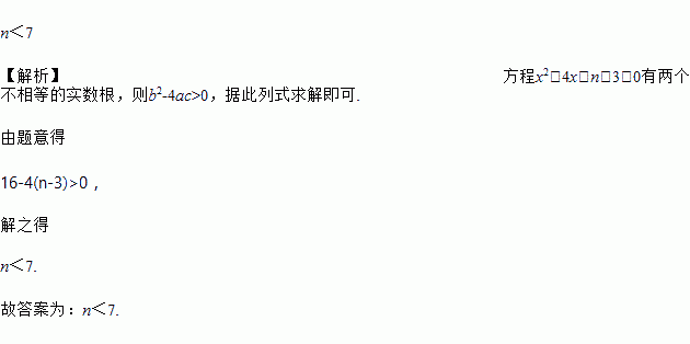 若关于x的一元二次方程x2+4x+n-3=0有两个不相等的实数根,则n的取值范围是_________.