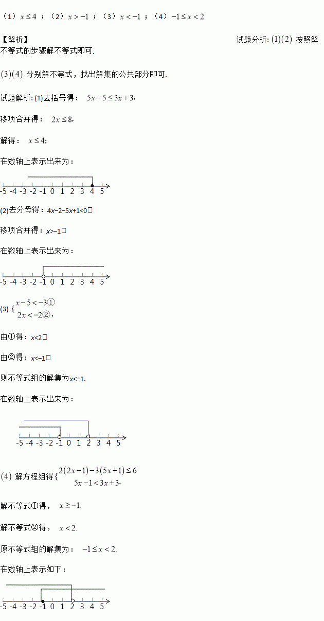 解下列不等式或不等式组,并把解集在数轴上表示出来