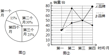 (2)根据扇形图计算出第三个月的销售A、B空调台数和第四个月的销售销售A、B空调的台数,就可以分别求出B品牌空调三月、四月的销售量.