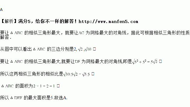 如图,在的正方形方格中,的顶点都在边长为的小正方形的顶点上,作一个与相似的,使它的三个顶点都在小正方形的顶点上,则的最大面积是( )