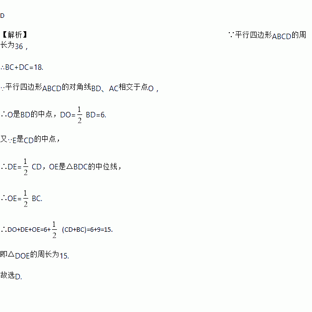 如图,平行四边形的周长为,对角线, 相交于点,点是的中点, ,则的周长为( ).