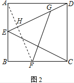 (2)①连接AF,交ED于H,证明△DAE≌△ABF,得到△HFG为等腰直角三角形,根据等腰直角三角形的性质计算即可;
