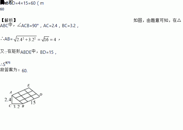 如图,若要建一个蔬菜大棚,棚宽3.2 m,高2.4 m,长15 m,请你计算,覆盖在顶上的塑料薄膜需要____m2.