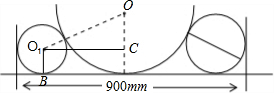 在直角△OBC中,AB=900÷2-50=450-50=400=O1C,OC=R-50,OO1=R+50,