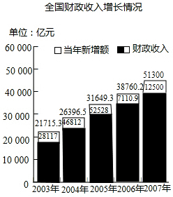 £¨3£©2007ÄêµÄÔö³¤½Ï¿ì£¬ÖйúµÄ²ÆÕþÊÕÈëÖðÄêÔö¼Ó£¬¹úÄÚÉú²ú×ÜÖµÒ²ÔÚÖðÄêÔö¼Ó£®