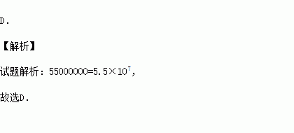 A.55×106 B.0.55×108 C.5.5×106 D.5.5×107