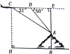 如图,为探测某座山的高度AB,某飞机在空中C处测得山顶A处的俯角为31°,此时飞机的飞行高度为CH=4千米;保持飞行高度与方向不变,继续向前飞行2千米到达D处,测得山顶A处的俯角为50°,求此山的高度AB.(参考数据:tan31°≈0.6,1an50°≈1.2)