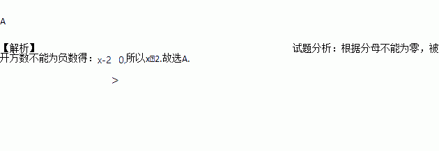 A. x>2 B. x<2 C. x≠2 D. x≥2