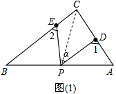 分析 (1)连接PC,根据三角形的一个外角等于与它不相邻的两个内角的和可得∠1=∠PCD+∠CPD,∠2=∠PCE+∠CPE,再表示出∠1+∠2即可;