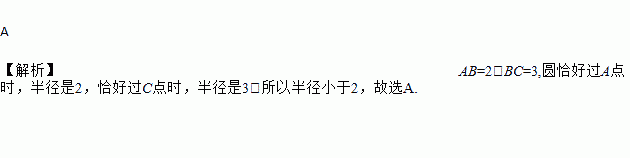 如图,已知△ABC中,AB=2,BC=3,∠B=90°,以点B为圆心作半径为r的⊙B,要使点A、C在⊙B外,则r的取值范围是( )