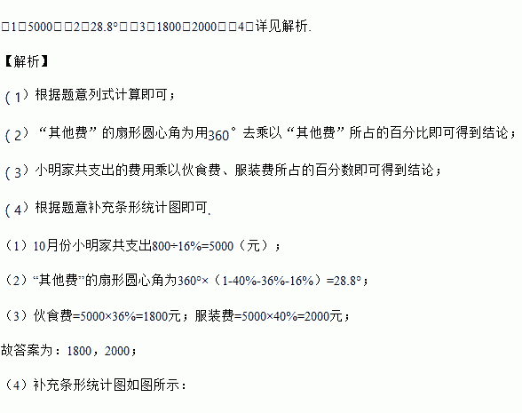 小明在学习了数据的收集、整理与描述后,为妈妈整理记录了10月份的家庭支出情况,并绘制成如下尚不完整的统计图表,请你根据图表信息完成下列各题:
