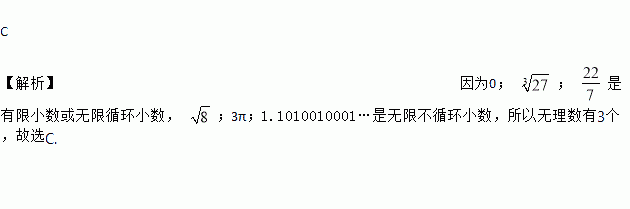 在下列各数中;0;3π; ; ;1.1010010001…,无理数的个数是( )