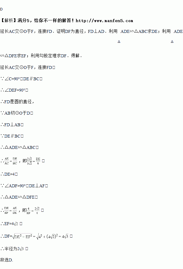 如图,与的斜边相切于点,与直角边相交于点,且.已知,,,则的半径是( )