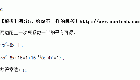 A. (x-4)2=15 B. (x+4)2=15 C. (x-4)2=17 D. (x+1)2=17
