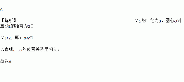 已知⊙O的半径为3,圆心O到直线L的距离为2,则直线L与⊙O的位置关系是( )