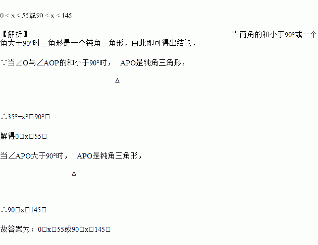 如图,已知, 点是射线上一个动点 , 设,要使△APO是钝角三角形,则的取值范围为____________________.
