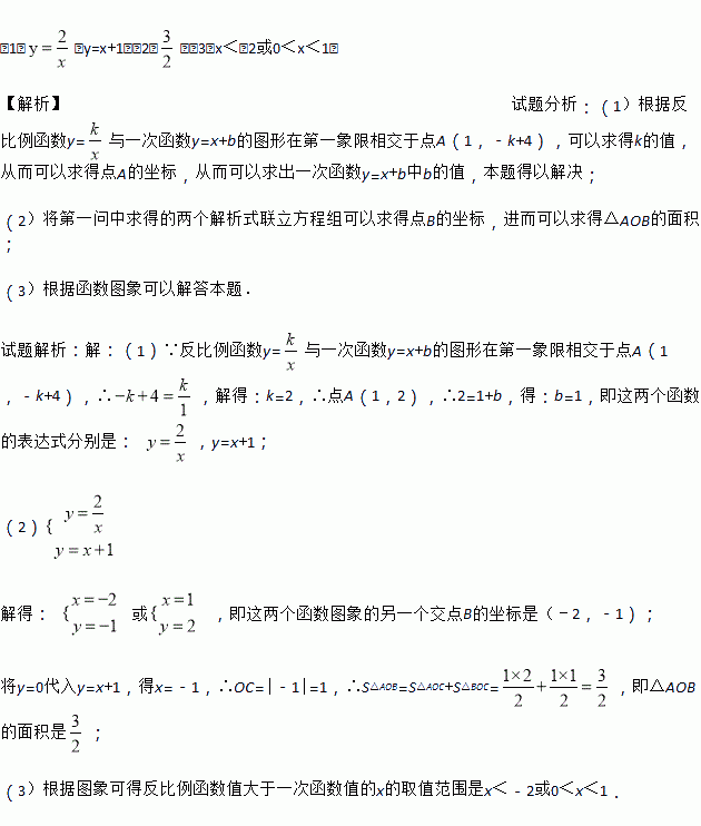 与一次函数y=x+b的图形在第一象限相交于点A(1,﹣k+4).