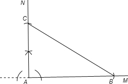 分析:先作一直角∠MAN,然后在边AM上截取AB得到点B,在边AN上截取AC得到点C,连接BC即可得到所要求作的直角三角形.