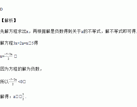 关于x的方程3x+2a=x﹣5的解是负数,则a的取值范围是( )