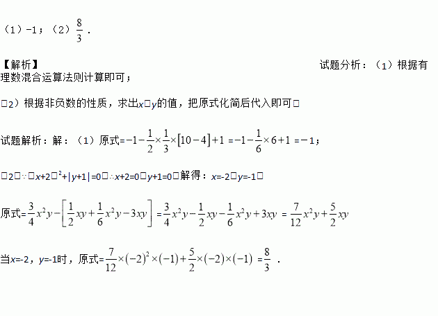 (2)已知(x+2)2+|y+1|=0,化简并求值: .