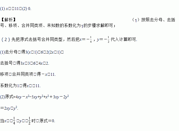 (2)先化简,再求值:4xy-[(x2+5xy-y2)-(x2+3xy-2y2)],其中x=-,y=-.