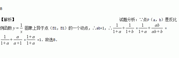 已知点P(a,b)是反比例函数y=图象上异于点(-1,-1)的一个动点,则的值为( )