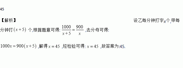 甲、乙两名学生练习计算机打字,甲打一篇1000字的文章与乙打一篇900字的文章所用的时间相同.已知甲每分钟比乙每分钟多打5个字,则乙每分钟打______个字.