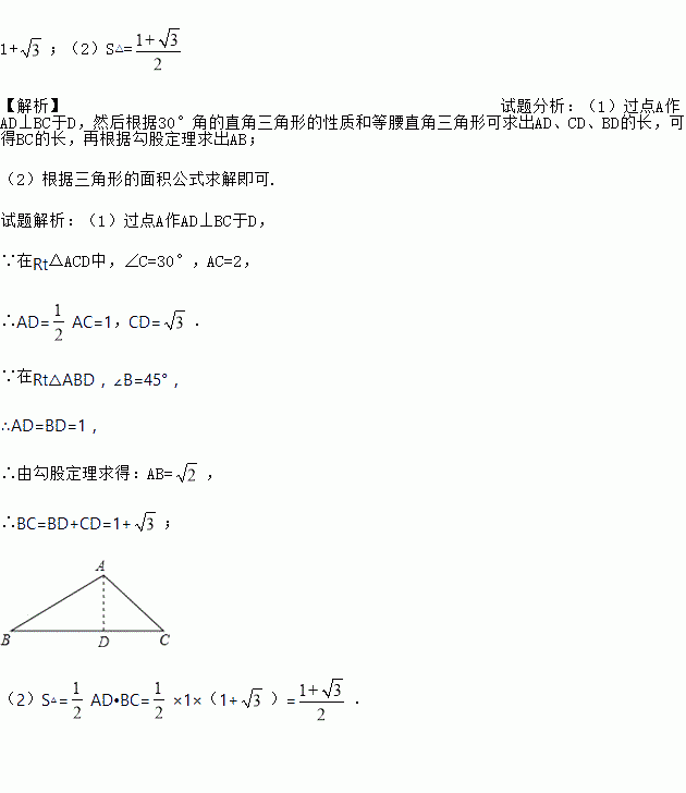 已知:在△ABC中,∠B=30°,∠C=45°,AC=2.求: