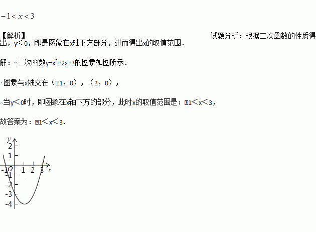二次函数y=x2-2x-3的图象如图所示.当y<0时,自变量x的取值范围是________.