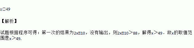 对一个实数x按如图所示的程序进行操作,规定:程序运行从“输入一个实数x”到“结果是否大于88?”为一次操作.如果操作只进行一次就停止,则x的取值范围是________.