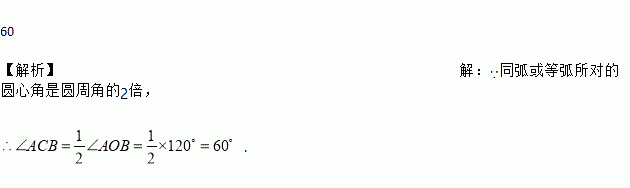 如图,OA,OB是⊙O的半径,点C在⊙O上,连接AC,BC,若∠AOB=120°,则∠ACB= °.