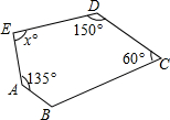 如图,若AB∥CD,则∠E的度数为( )