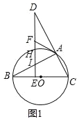 如图1,BC是的直径,点A在上,点D在CA的延长线上,,垂足为点E,DE与相交于点H,与AB相交于点过点A作,与DE相交于点F.