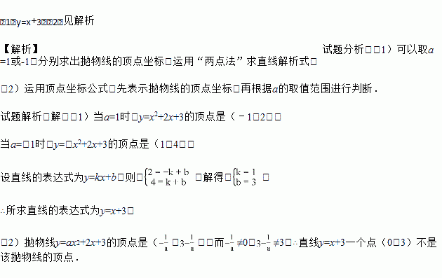 某校数学研究小组在研究有关二次函数及其图象性质时,发现了一个重要结论:抛物线y=ax2+2x+3(a≠0),当实数a变化时,它们的顶点都在某条直线上.